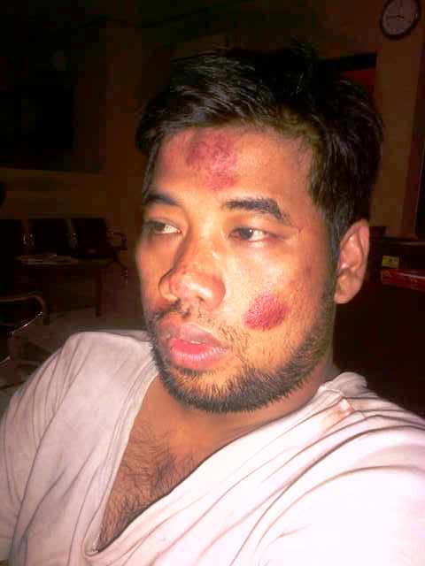 Yuska, anggota PP yang menjadi korban penganiayaan dan pengeroyokan hanya bisa pasrah ketika mendatangi kantor polisi Polsek Genteng. Dalam keadaan wajah penuh darah dan lebam, ia melaporkan aksi penganiayaan yang dialaminya, Rabu (29/10).