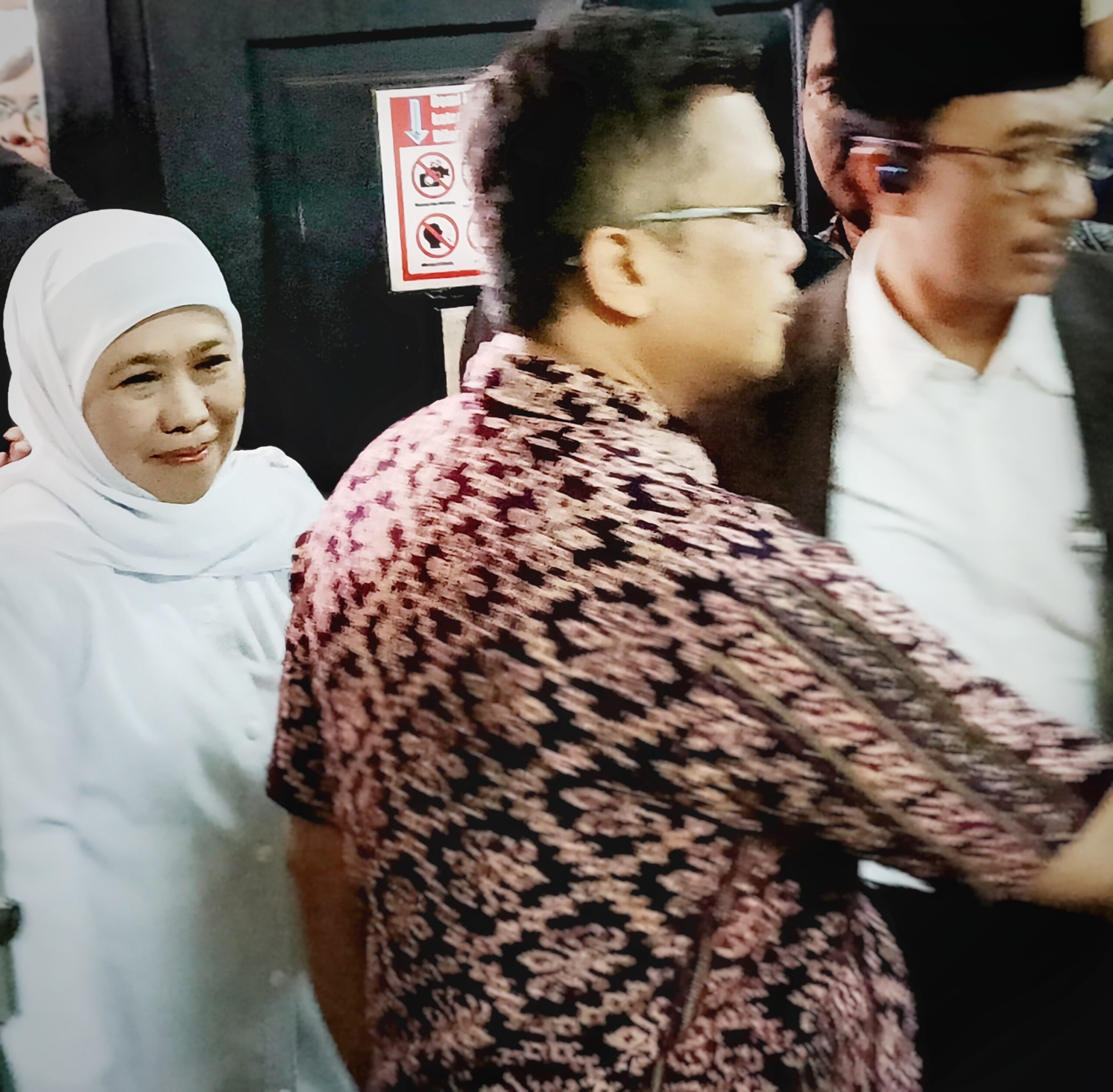 Begitu mobil yang membawa Kedatangan Khofifah Indar Parawansa memasuki Pengadilan Tipikor Surabaya, langsung disambut Kepala Biro Hukum Pemprov Jatim Adi Sarono. Khofifah pun memasuki ruang sidang Cakra Pengadilan Tipikor Surabaya dengan pengawalan ketat.