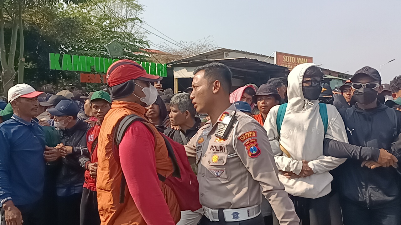 Situasi yang mulai memanas dan sempat terjadi ketegangan antara ratusan massa dengan pihak aparat kepolisian.