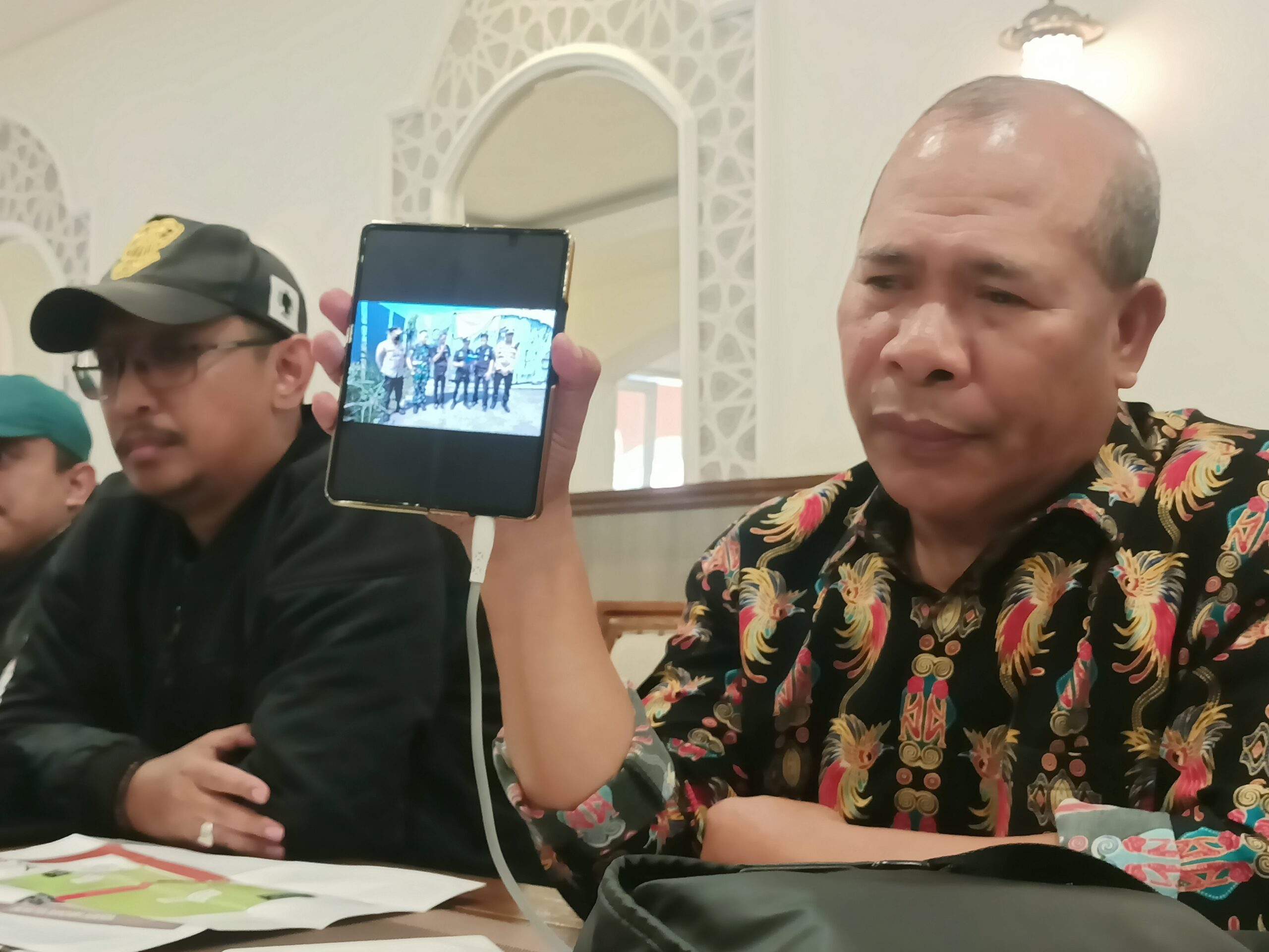 Abdul Salam menunjukkan video pelaksanaan eksekusi lahan seluas 9,8 hektar di Desa Tambak Oso Sidoarjo. (FOTO : parlin/surabayaupdate.com)