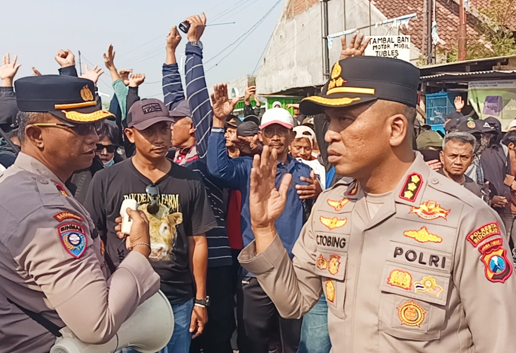 Kapolresta Sidoarjo Kombes Pol Christian Tobing ditengah kerumunan massa. (FOTO : parlin/surabayaupdate.com)
