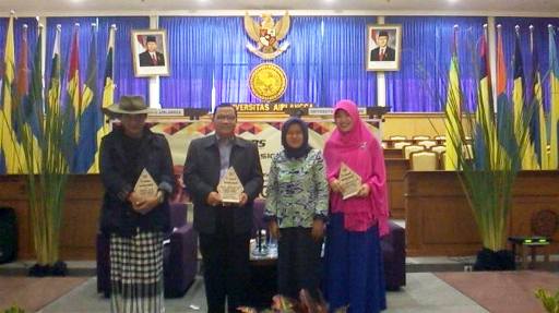 Caption Poto: Sujiwo Tejo (kiri) H. Masfuk, S.H (tengah) dan Dr. Aris Amoninggar (Jilbab Merah Muda) yang diundang sebagai pemateri dan moderator di acara seminar nasional the art preuneur strategy yang diselenggarakan Fakultas Ekonomi dan Bisnis Universitas Airlangga Surabaya. (FOTO : humas Unair untuk surabayaupdate.com)