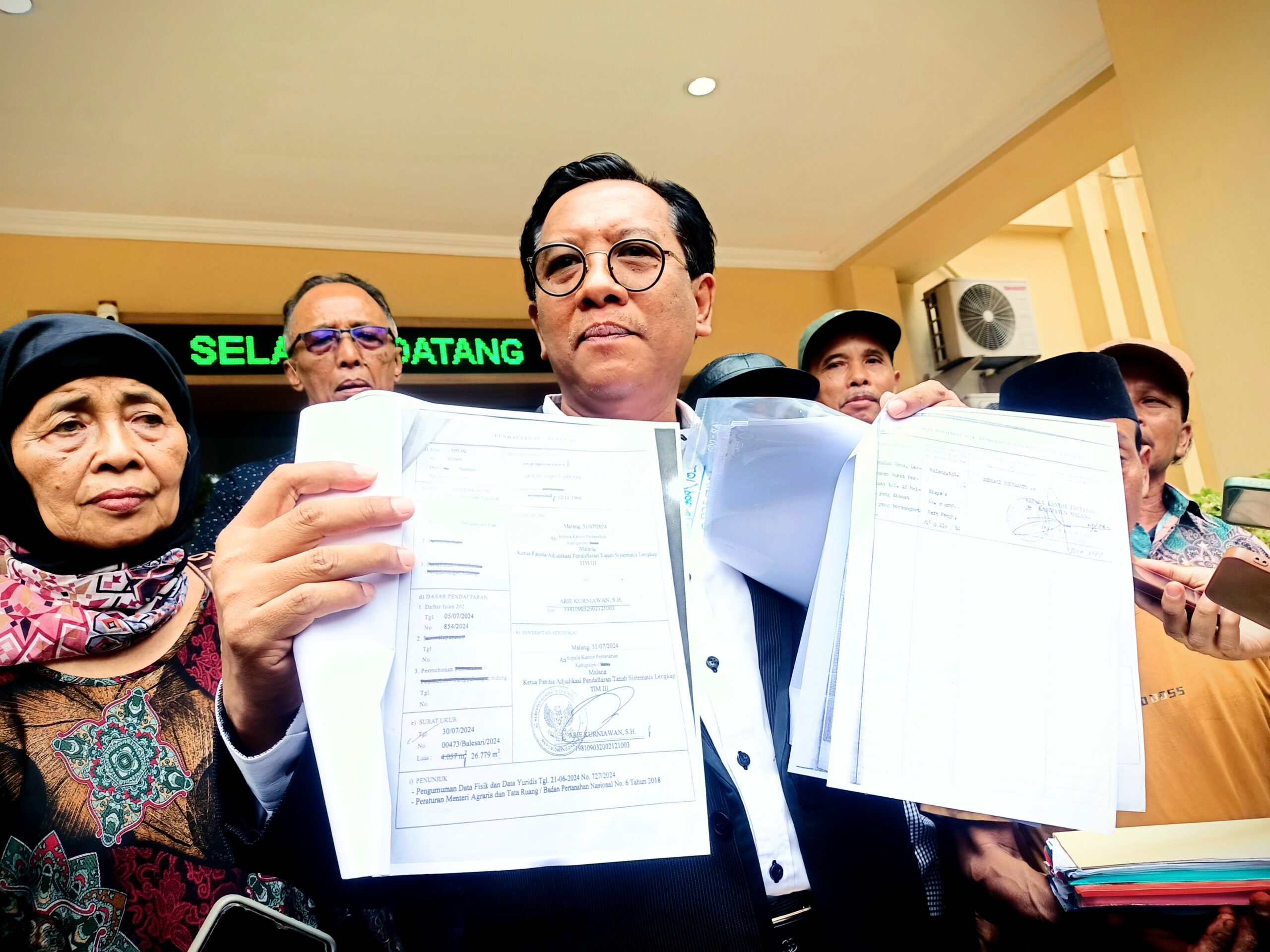 Didampingi tim kuasa hukumnya, 20 orang warga Desa Ngajum Kecamatan Balesari Kabupaten Malang ini langsung membuat pengaduan di SPKT Polda Jatim, Rabu (24/9/2025).