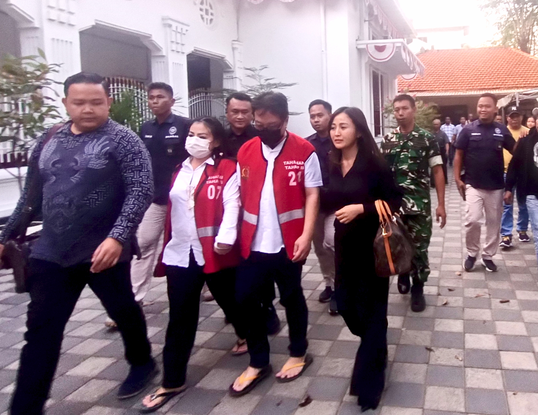 Dengan pengawalan dari salah satu anggota TNI, pengawal tahanan dari Kejaksaan Negeri (Kejari) Surabaya, beberapa petugas pengamanan dalam (Pamdal) PN Surabaya dan dua penasehat hukumnya, terdakwa Handy Soenaryo dan terdakwa Jan Hwa Diana dikeluarkan dari ruang sidang Garuda 2 menuju ke mobil tahanan yang telah menunggu di sisi selatan gedung PN Surabaya.