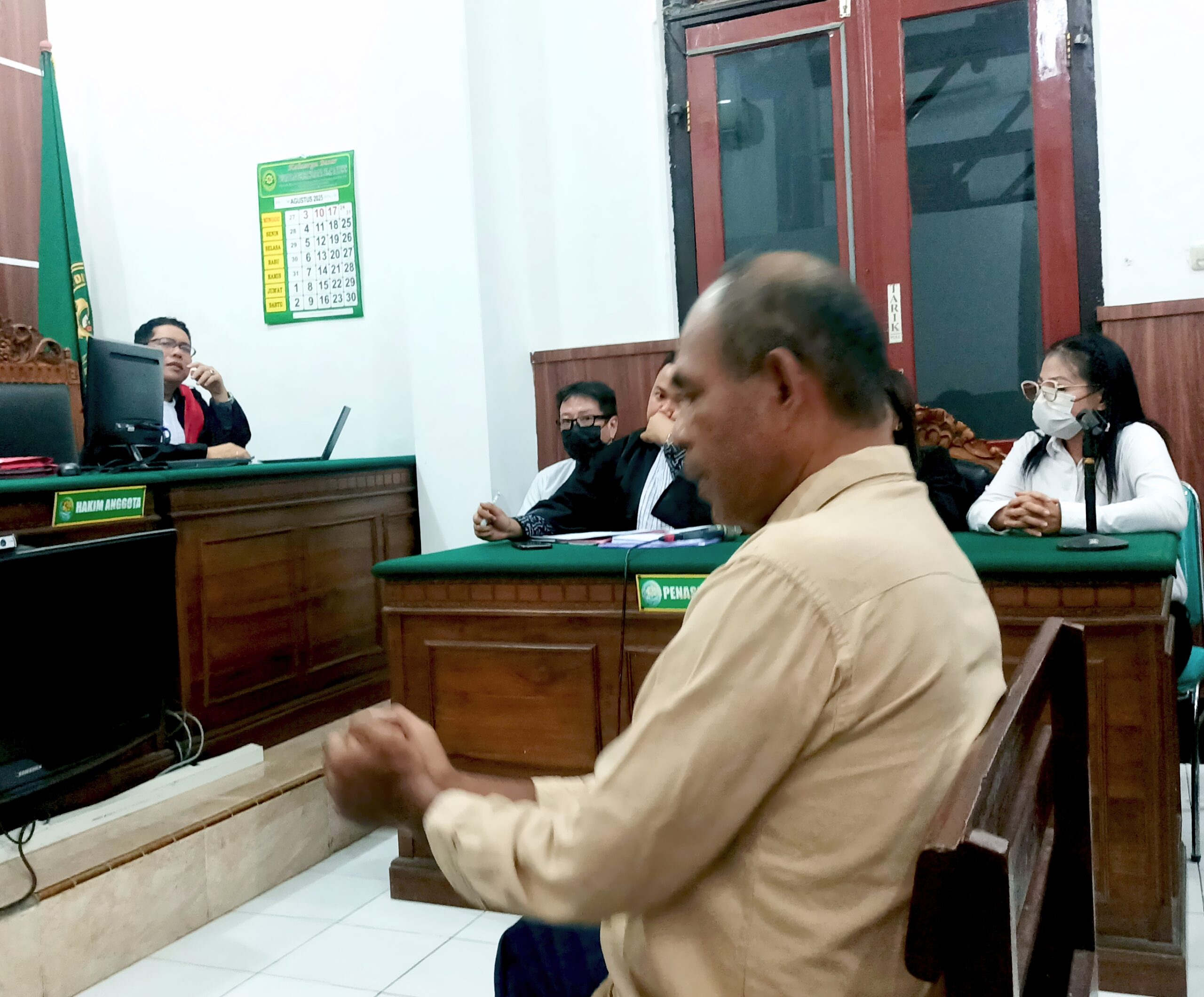 Melihat situasi yang mulai memanas, hakim Cakra yang bisa berkomunikasi menggunakan bahasa NTT, berusaha menenangkan beberapa pengunjung sidang dari NTT yang tinggal di Surabaya.